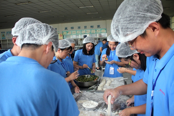 拓展訓(xùn)練結(jié)束,大學(xué)生齊聚一堂,開展集體包餃子活動,各小組積極參與,配合密切,搟面、調(diào)餡、包餃子等各程序進(jìn)行的井然有序,忙得不亦樂乎的同時有的還擔(dān)任著“現(xiàn)場教學(xué)任務(wù)”,為身邊的小伙伴傳授新技能,整個現(xiàn)場暖意融融,手指躍動間,一盤盤餃子在歡聲笑語中紛紛成型。通過此活動,讓大家親身感受到了過程中團(tuán)隊(duì)合作的樂趣,享受到了孚日大家庭的溫暖。