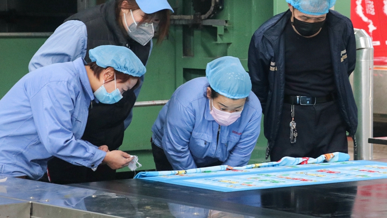 “目前,我們各個工序已經恢復了往日的喧鬧和忙碌,織造、染色、印花、后整理等每個環節的生產都井井有條。在整裝車間縫紉工序,我們想出了加設隔離板等妙招,給操作人員吃上了‘定心丸’。集團全體管理人員還與一線員工一起干,以保證集裝箱的順利發貨。”這位負責人說道。