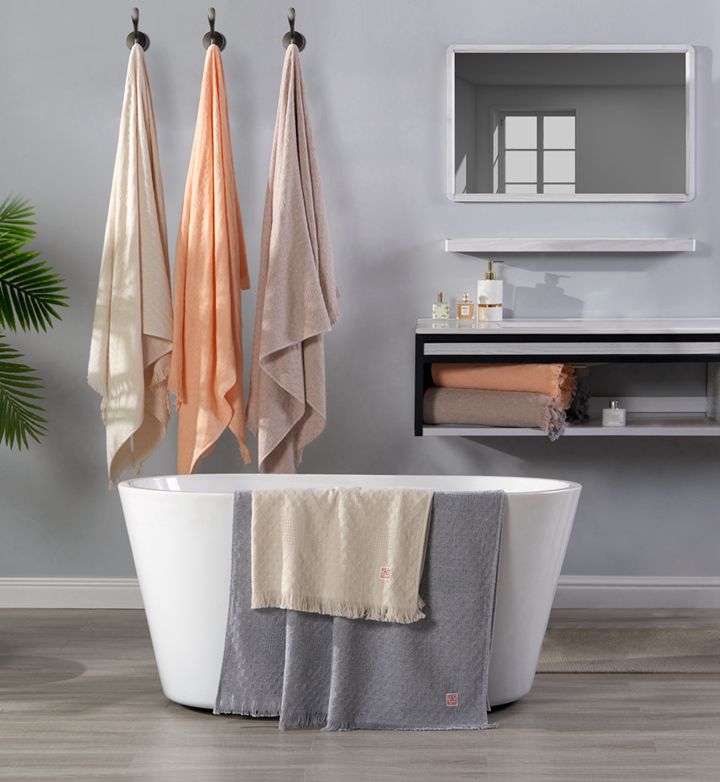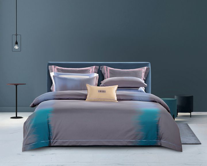 《水墨桑麻》設計靈感來源于極限主義,強調一種"理性、冷峻、簡約"的藝術風格。產品采用原液著色的有機“竹麗爾”紗線織造而成,通過素色工藝達到肌理豐富的色織效果。產品采用漸變設計,放棄過度裝飾,秉承簡約而不簡單的原則,顏色搭配跟組織相得益彰,演奏出一曲觸感溫柔、貼近自然的和諧樂章。