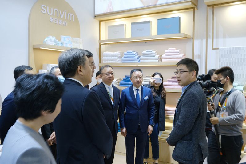 近日,2023中國國際家用紡織品及輔料(春夏)博覽會在上海國家會展中心隆重舉行。孚日集團旗下孚日家紡和潔玉毛巾兩大品牌在此次展會精彩綻放,孚日集團副總經(jīng)理國內(nèi)品牌運營總負責人孫浩博帶隊參展。展會首日,商務(wù)部市場建設(shè)司司長周強、工業(yè)和信息化部消費品工業(yè)司司長何亞瓊、供銷合作總社農(nóng)業(yè)生產(chǎn)資料與棉麻局副局長王建紅、中國紡織工業(yè)聯(lián)合會會長孫瑞哲、中國紡織工業(yè)聯(lián)合會副會長、中國家用紡織品行業(yè)協(xié)會監(jiān)事長楊兆華、中國紡織工業(yè)聯(lián)合會秘書長夏令敏等領(lǐng)導(dǎo)及嘉賓一行到孚日展館參觀,深入了解企業(yè)的運營狀況、科研優(yōu)勢、技術(shù)創(chuàng)新等信息。